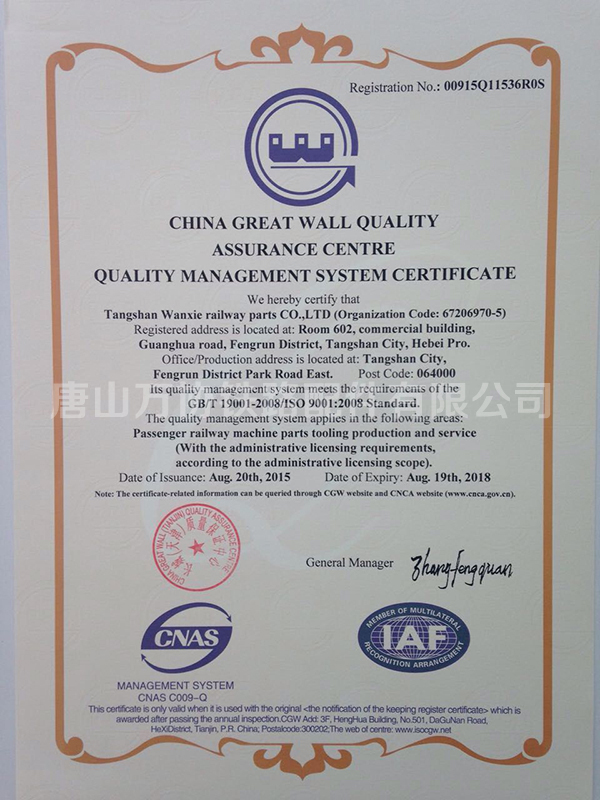 地址:唐山萬協(xié)鐵路配件有限公司手機:13932580311傳真:0315-3231234